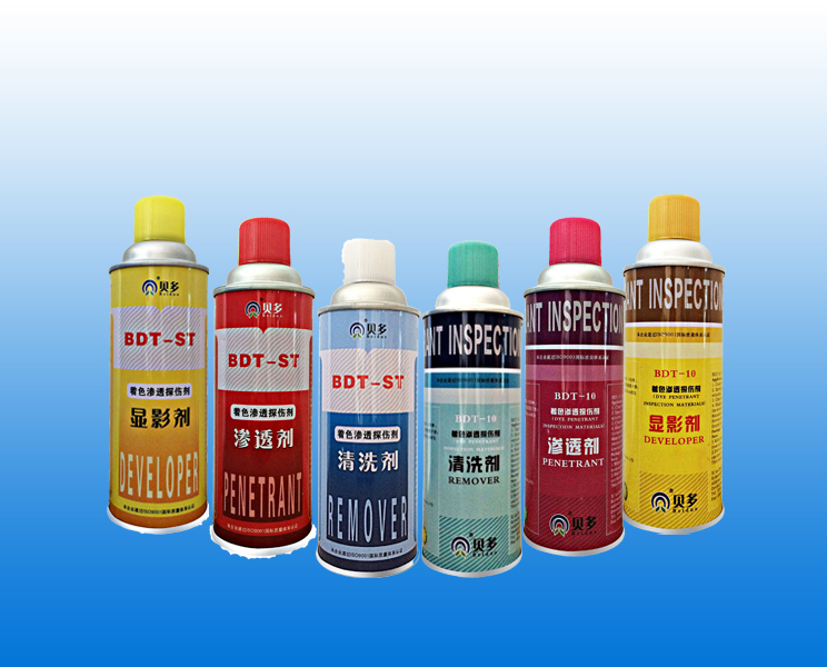 著色滲透探傷劑用于非鐵磁性材料表面缺陷檢測,產品顯像迅速,清晰,線條細,不暈染。廣泛應用于化工、造船、發電、航空、機械、汽車、冶金、石油、鐵路、受壓容器等部門的探傷檢測。